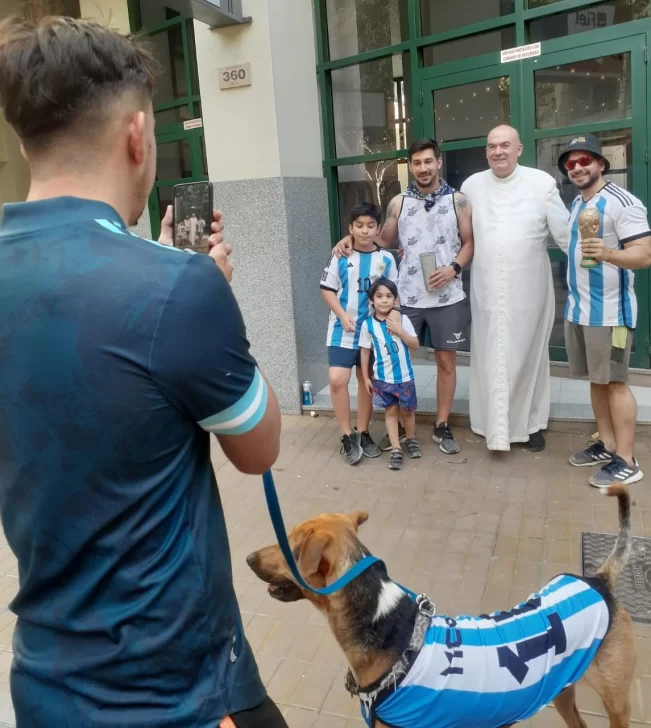 No solo fue blanco de muchas fotos junto a los hinchas, sino que le entonaron un simpático ¡"Padre la la la!". El religioso devolvió con sonrisas el cántico.