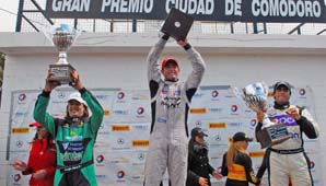 Comodoro Rivadavia, 8 de noviembre.- La carrera se dio por finalizada en el giro 32 luego de una última vuelta donde se produjeron varios despistes debido a la falta de adherencia por un fuerte chaparrón que sorprendió a varios pilotos entre ellos a Juan Manuel Silva, Omar Martínez, Matías Rossi y Gustavo Tadei.
