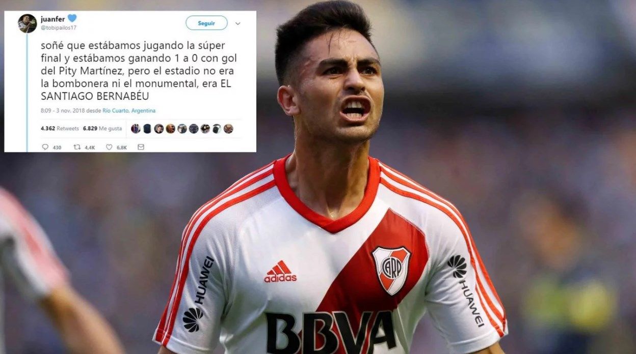 El 3 de noviembre, cuando se supo que Boca y River jugarían los partidos definitorios de la Copa Libertadores, el joven posteó en Twitter: "Soñé que estábamos jugando la súper final y estábamos ganando 1 a 0 con gol del Pity Martínez, pero el estadio no era la Bombonera ni el Monumental, era EL SANTIAGO BERNABÉU", relató en su cuenta.