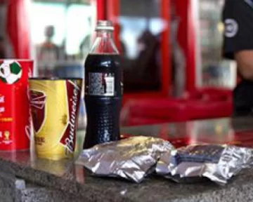 Para el Mundial, Brasil debió cambiar su legislación con respecto a la venta de alcohol en los estadios, que no estaba permitida. En la Copa del Mundo, es lo más característico y en cada partido corren litros y litros de cerveza, hasta incluso hay puestos que es lo único que sirven. Adentro de la cancha, se consigue a 13 y 10 reales (40 y 50 pesos) según la marca la lata de medio litro. Afuera las latas pequeñas cuestan 5 reales. Las gaseosas valen 8 reales el medio litro y se sirven en vasos alusivos al partido que se está disputando. Un menú variado, además del fútbol.