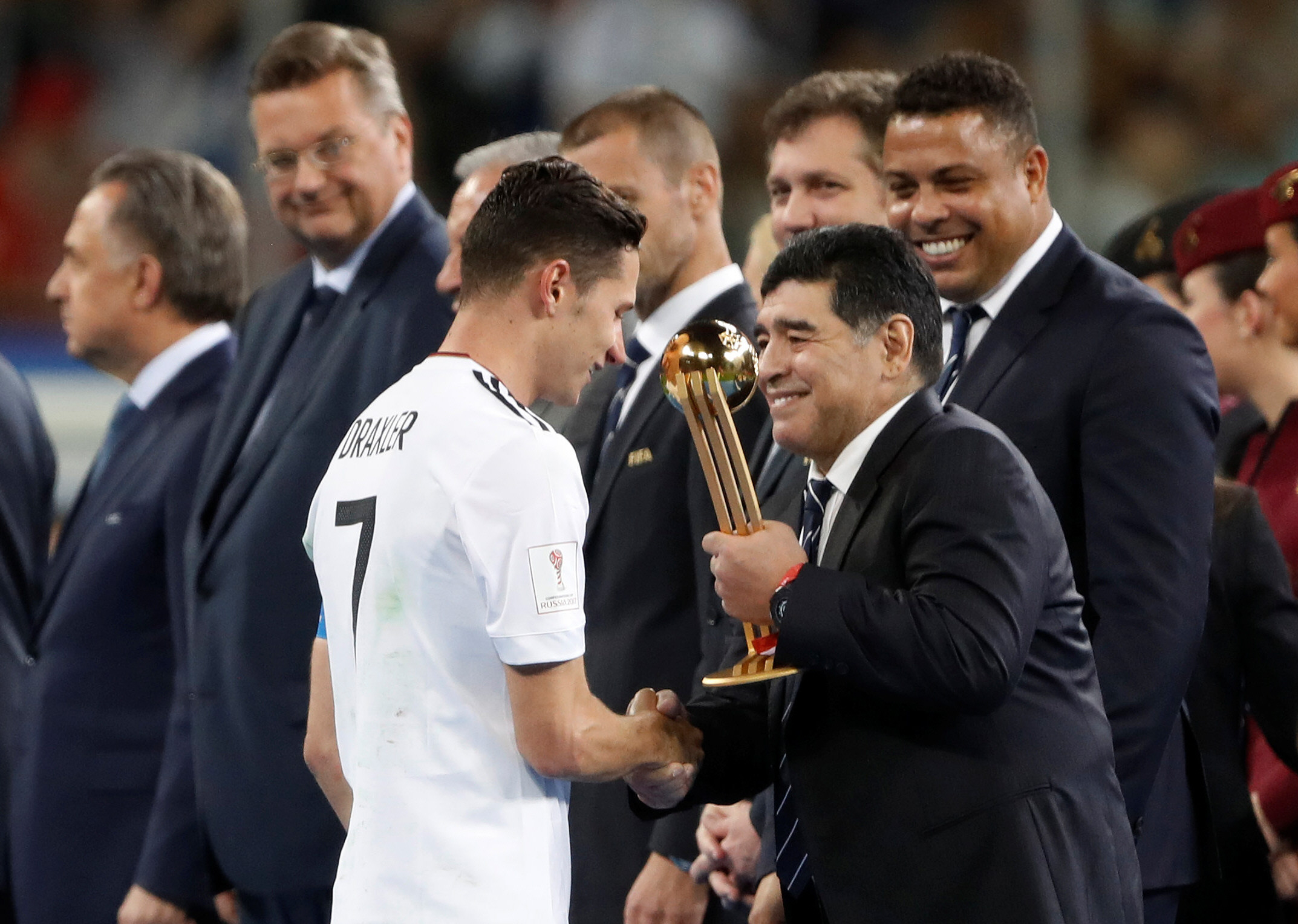Confederaciones y recibió el trofeo de manos de Diego Armando Maradona.