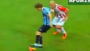 Diario de Cuyo | HOME | Pasión Deportiva | Brasil ¡Tres en una! Maximiliano Rodríguez, de Gremio, volvió loco al defensor del Náutico Jean Rolt y le tiró tres caños en una jugada, que terminó con una patada y tarjeta amarilla. Por Redacción Diario de Cuyo 13/09/2013 · 0:00 Mirá el video Ver los comentarios ›