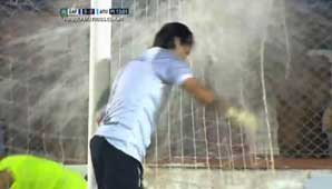 En el 2 a 2 de Atlético Tucumán frente a Guaraní Antonio Franco, Cristian Luchetti vivió un episodio insólito cuando, tras una jugada, y mientras retiraba serpentinas de su área, recibió ¡un baldazo de agua! que salió desde la popular local y lo terminó empapando.