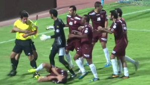 Diario de Cuyo | HOME | Pasión Deportiva | Papelón ¿Y el ejemplo? Un árbitro cobró un penal que a los jugadores del Al Arabi no les gustó. Entonces, el colegiado le pegó una trompada a uno de los futbolistas y a otro le tiró una patada. Por Redacción Diario de Cuyo 25/10/2013 · 0:00 Ver los comentarios ›