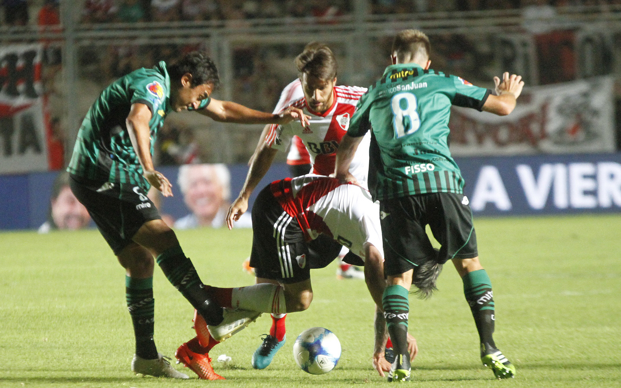 Esa temporada se cerró con el descenso del Verdinegro, luego regresó pero fue River quien bajó al Nacional B y por ello recién el domingo 9 diciembre 2012 volvieron a jugar en San Juan, pero en el Bicentenario. Y festejó la visita 2-0 con goles de Manuel Lanzini y Carlos Sánchez.