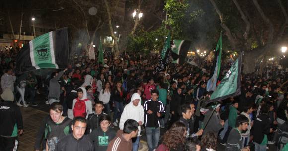 Arrancaron a las 20 horas desde el estadio Hilario Sánchez y terminaron la celebración a las 21.30, en el kilómetro cero de la provincia, la Plaza 25 de Mayo. Así fue la caravana de los hinchas de San Martín que ayer celebraron los 106 años de vida del club, con total tranquilidad, y convulsionando el centro sanjuanino con su llegada por calle Mendoza. El festejo, que según la Policía tuvo una concurrencia superior a las 1.500 personas, se armó mediante las redes sociales y en su mayoría los participantes fueron jóvenes. Hubo mucha percusión mediante los bombos y redoblantes que tuvieron los fanáticos, y también dijo presente el colorido con las bengalas verdes y negras. A la hora del cancionero, las dedicatorias más picantes fueron para el lado de Godoy Cruz y Desamparados, siempre remarcando que “San Martín es el orgullo de Cuyo”.