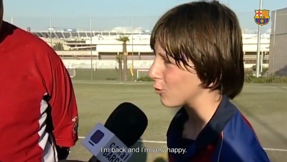 Para celebrar su primer partido, el club catalán muestra imágenes de Leo en los juveniles.