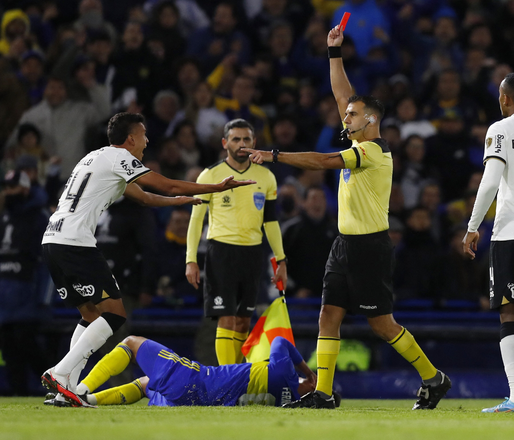 Los jugadores de Boca y Corinthians protagonizaron un tenso momento en el duelo en la Bombonera: hubo empujones y todo terminó con una expulsión en el conjunto brasileño, además de la roja para el entrenador Vítor Pereira.