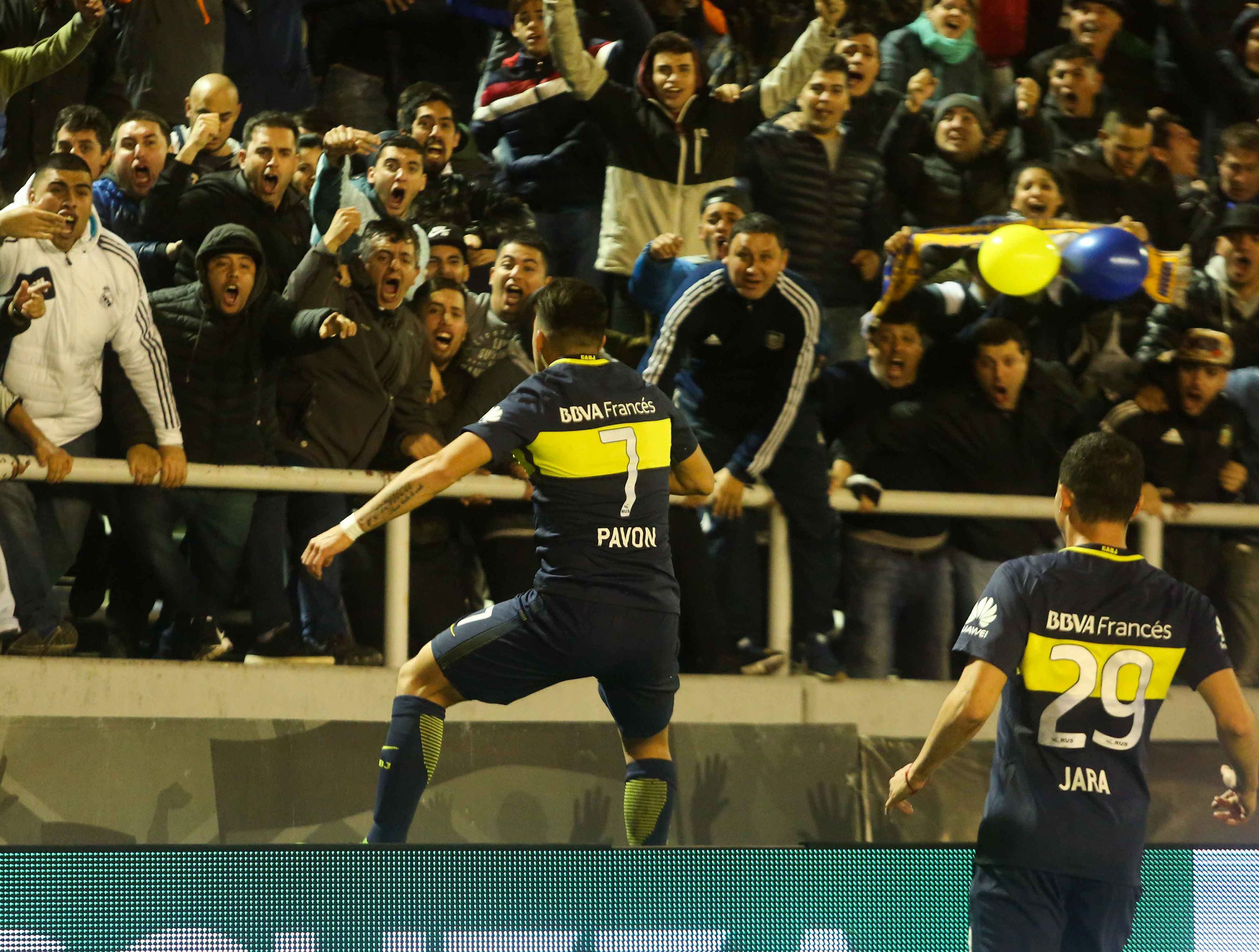 Boca Juniors quedó a un paso del título de Primera División al golear a Aldosivi por 4-0 en el Estadio José María Minella, en Mar del Plata, por la antepenúltima fecha del torneo. Los goles los hicieron Cristian Pavón, Ricardo Centurión, Fernando Gago, de penal, y Jonathan Silva. El azul y oro podría consagrase campeón el próximo miércoles frente a Olimpo en Bahía Blanca, teniendo en cuenta que le sacó cinco puntos de ventaja al escolta, Banfield, y siete a River Plate, que mañana recibirá a Racing Club. En caso de imponerse en el Roberto Natalio Carminatti, el xeneize será campeón sin necesitad de tener en cuenta resultados ajenos. Además, con este resultado el equipo de Guillermo Barros Schelotto se clasificó a la Copa Libertadores de América del año próximo. Dos minutos de lucidez le alcanzaron al Xeneize para desbaratar la estrategia defensiva de Aldosivi, que terminó en inferioridad numérica porque a los 36 minutos del segundo período fue expulsado directamente Franco Canever, por pegarle un codazo a Centurión. Boca fue paciente en la mayor parte de la etapa inicial, en la que buscó constantemente a los laterales para abastecer con centros a Centurión y Darío Benedetto, aunque tan sólo generaba aproximaciones. El local se mantenía muy ordenado en el medio, cuando podía intentaba atacar a la espalda de Silva y así generó peligro a los 24 minutos de juego. Nicolás Miralles y Antonio Medina se las ingeniaron para habilitar con un buen centro a Pablo Lugüercio, quien conectó de cabeza en el corazón del área y la pelota pasó cerca del poste izquierdo de Agustín Rossi. No obstante, a los 38, Fernando Gago encontró a Pavón con un pase vertical y el delantero la clavó en el ángulo inferior derecho desde fuera del área.