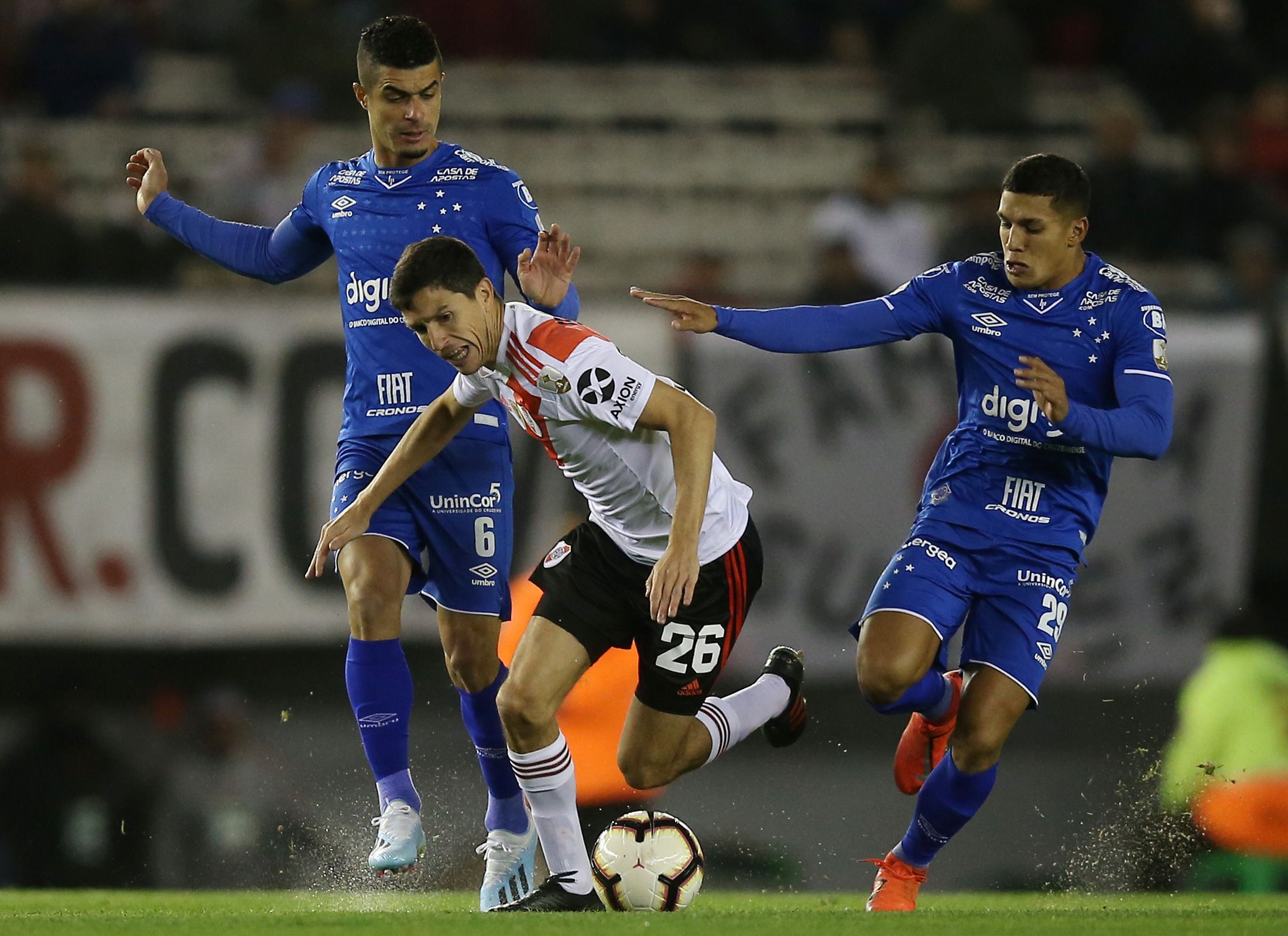 River Plate y Cruzeiro sellaron anoche un empate con marcador en blanco en el estadio "Monumental" de Buenos Aires, por los octavos de final de la Copa Libertadores. El encuentro, que se disputó en una fría noche, tuvo varias opciones para el local pero no pudo concretar e incluso Matías Suárez desvió un penal sobre la hora, para una serie que se definirá el próximo martes en el Mineirão de Belo Horizonte.