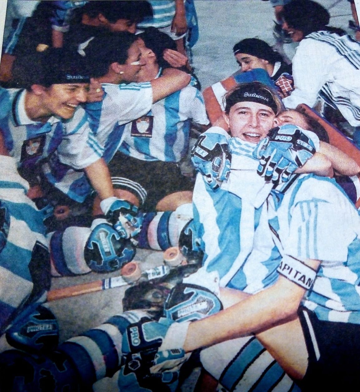 Viviana Foresto, Gabriela Alessi, Laura Montané, Romina Putelli, Viviana Gómez y Paola Sólimo junto a quien fuera el DT en ese momento Miguel Gómez, y Carlos Moreta (su ayudante) se dieron cita en la Villa Mallea para recordar aquel momento. "No había fotos como hay ahora, pero los recuerdos están intactos. Volvernos a juntar es lo máximo", contó emocionada Viviana Foresto quien llegó desde Córdoba para vivir una noche única. Sí, la imagen de ese abrazo triunfal tras el triunfo ante Portugal por 3 a 1 en cancha de Ciudad de Buenos Aires, sigue allí, como si los años no hubieran pasado. "Recuerdo que esos tres goles de Vanesa (Sólimo) nos dieron el campeonato, ¡qué alegría que teníamos!", recordó Gabriela Alessi.