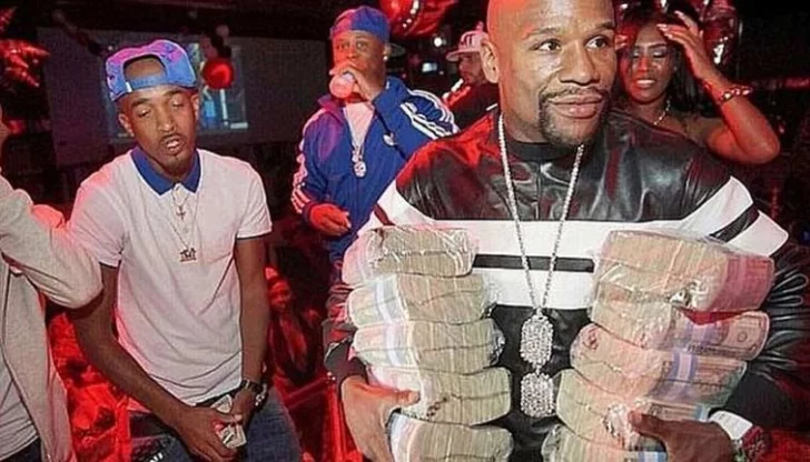 El púgil que acumuló un récord de 49 peleas invicto se presentó en el exclusivo club King of Diamonds de Miami con varios fajos de billetes entre sus brazos. Las imágenes son comparables con la forma en que el famoso narco colombiano Pablo Escobar manejaba sus millones.
