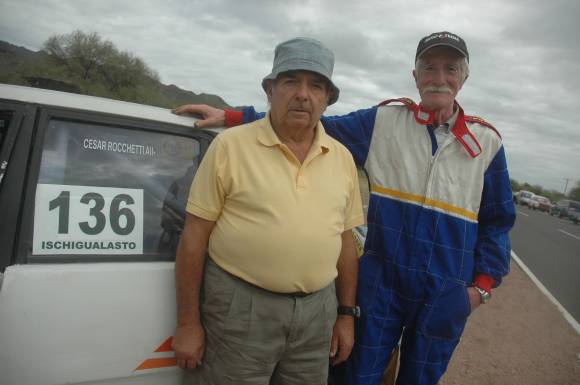 César Rocchetti es el piloto de más edad en el Safari, con 73 años. Piloto de innumerables batallas, entre 1990 y 2001 corrió los campeonatos argentinos de la especialidad en un Renault 18 y tiene en sus espaldas 8 ediciones del Rally Mundial en el país. "Hace unos años, un periodista de El Gráfico me dijo que yo era el piloto de mayor edad en el mundo en actividad. Pero este año quiero retirarme", dijo César, quien es navegando por Alejandro Roldán y maneja, no podía ser de otra manera, un Renault.