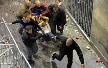 Las personas detenidas están acusadas de desórdenes públicos y atentado a los agentes de la autoridad, quienes terminaron siendo víctimas de los hinchas catalanes en medio de la algarabía.