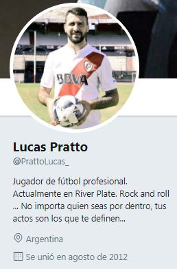 Ñucas Pratto, el flamante refuerzo de River, modificó su usuario de Twitter y sacó el número 12. Ahora, pasó de ser @PrattoLucas12 a @PrattoLucas_, después de una campaña de un grupo de hinchas en las redes sociales.