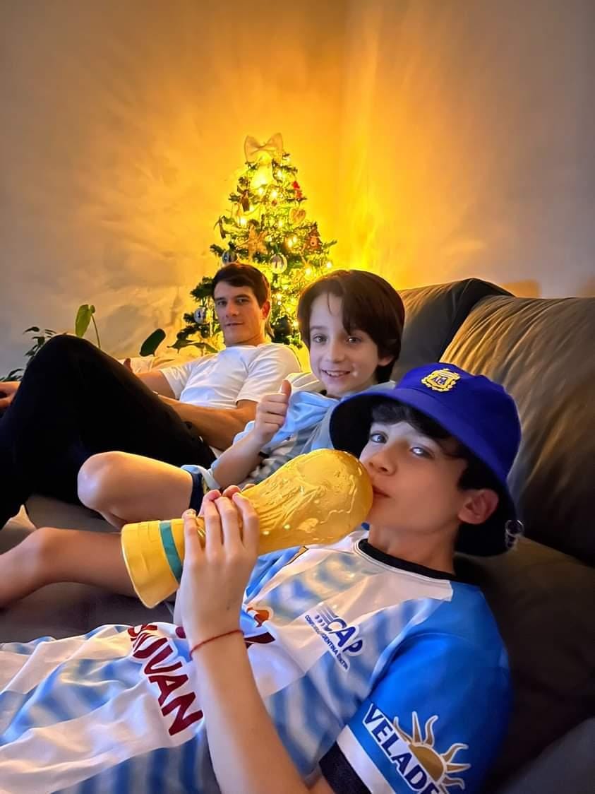 También desde Benfica, Lucas Ordoñez vivió el partido junto su familia. Leticia Corrales, su hijo Ignacio y las pequeñas Priscila y Sofía. Lo mismo hizo Pablo Alvarez junto a sus hijos Valentino y Matteo. Los chicos también demostraron como sienten a la Albiceleste a pesar de vivir del otro lado del charco, vieron el partido con camisetas, piluso y hasta una réplica de la Copa del Mundo.