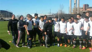 El ex capitán y entrenador del seleccionado argentino de fútbol reunió en un momento del trabajo al plantel y dio una charla a los jugadores, que ascendieron la temporada pasada a la cuarta categoría del fútbol argentino.
