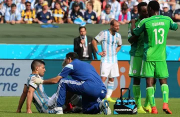 El atacante del Manchester City de Inglaterra fue reemplazado por Ezequiel Lavezzi durante el primer tiempo del cotejo en el estadio Beira-Rio en que Argentina le ganó 3-2 a Nigeria en el último partido por el Grupo F por una lesión en la pierna izquierda.