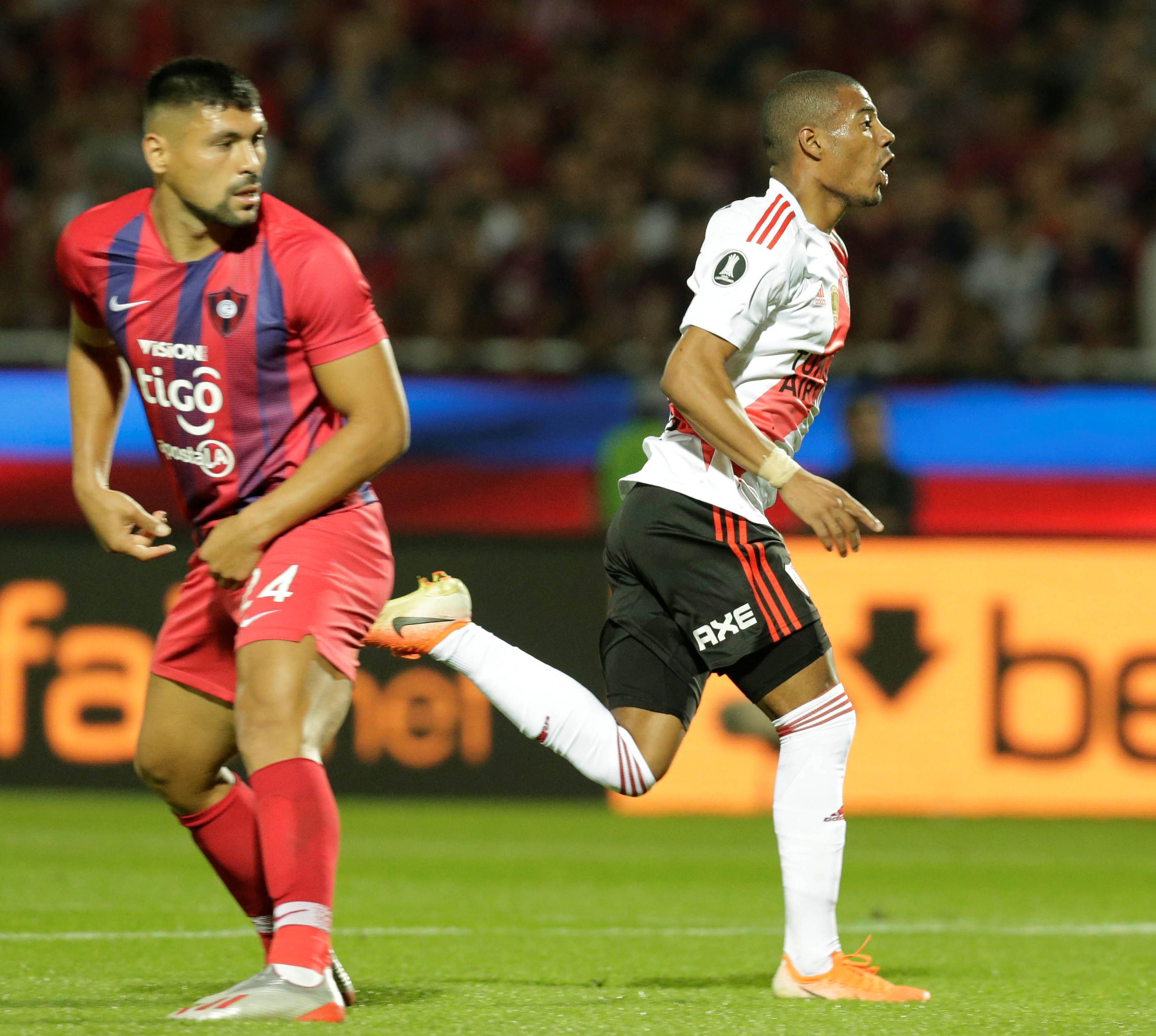 También la pasó mal River durante el primer tiempo del partido de anoche cuando a los 8 minutos Cerro Porteño logró ponerse en ventaja tras un centro del argentino Joaquín Larrivey que conectó de "palomita" el experimentado Nelson Haedo Valdez para dejar a su equipo a un tanto de llegar a los penales. River no encontró los espacios para sacar la contra y por contrapartida su rival, dirigido por Miguel Ángel Russo, le metió presión y merodeó el área de Franco Armani. Pero en el complemento River pegó a los 8 minutos: Matías Suárez en un mano a mano con Juan Pablo Carrizo, que ganó en primera instancia, pero del rebote apareció De la Cruz, justo a él le cayó la pelota, para que con un derechazo alto transformara el sufrimiento en alegría.