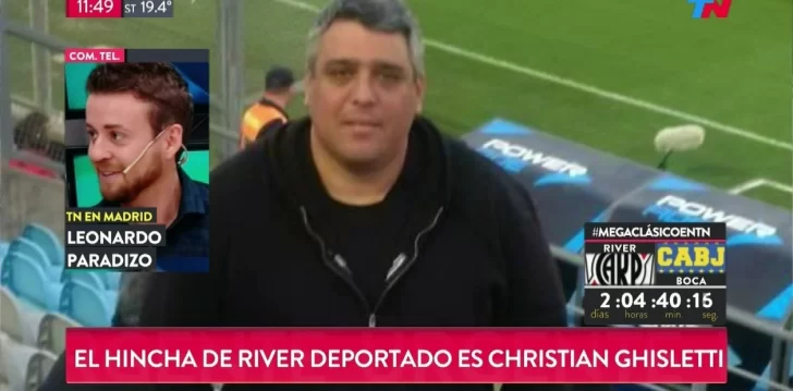 Se trata de Christian Ghisletti, de 45 años, quien tenía derecho de admisión e igual viajó a España. Al llegar a Madrid, las autoridades decidieron deportarlo a la Argentina. El barra, oriundo de Ciudadela, cuenta con una historia vinculada a la sangrienta interna de Los Borrachos del Tablón.