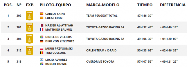 En segundo lugar finalizó el mendocino Lucio Álvarez, a 11m16s. El líder de la general, Carlos Sainz, sigue corriendo tranquilo para no poner en riesgo su liderazgo. Hoy terminó a 19m37s y está a un paso de quedarse con el título mañana en Córdoba.