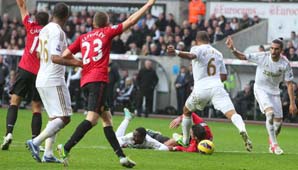 Inglaterra, 23 de diciembre.- Ashley Williams, defensa del Swansea, remató sobre la nuca de Robin van Persie tras una acción que ya había sido sancionada con falta y provocó la indignación del entrenador de los Diablos Rojos, quien temió por la vida de su goleador en el 1-1 de su equipo como visitante.