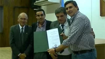San Juan, 30 de abril.- Tras conseguir por tercera vez consecutiva el campeonato de la Liga Argentina, el equipo de UPCN Vóley junto a su técnico Fabián Armoa y su manager Quique Valle recibieron una distinción por parte del Concejo Deliberante de la Ciudad de San Juan por este logro.