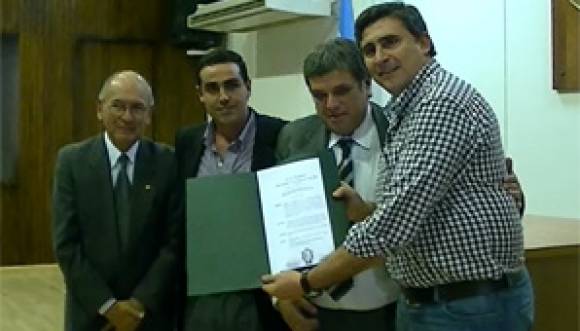 El manager del club, Enrique Valle, tomó la copia de la resolución que distingue la consagración de UPCN como campeón argentino. Luego el capitán del equipo, Demián González, recibió la placa conmemorativa y finalmente, el director técnico, Fabián Armoa, pasó al frente y levantó la pequeña distinción del municipio.