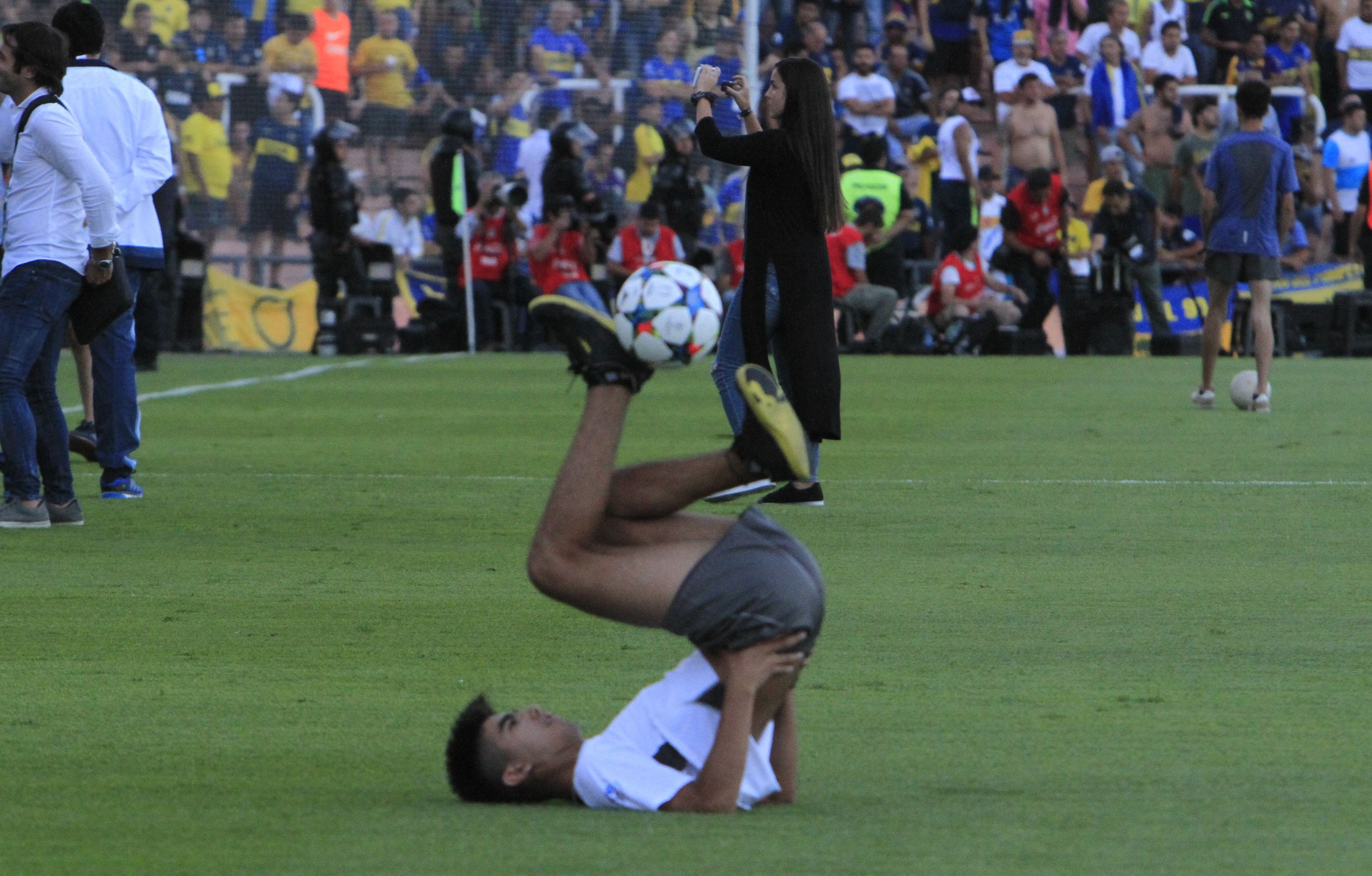 En la previa, 12 personas, seis en representación de cada equipo, tuvieron la chance de ejecutar un tiro libre desde el círculo central para convertir un gol, auspiciado por un banco. También, Pity Martínez entretuvo a la gente.