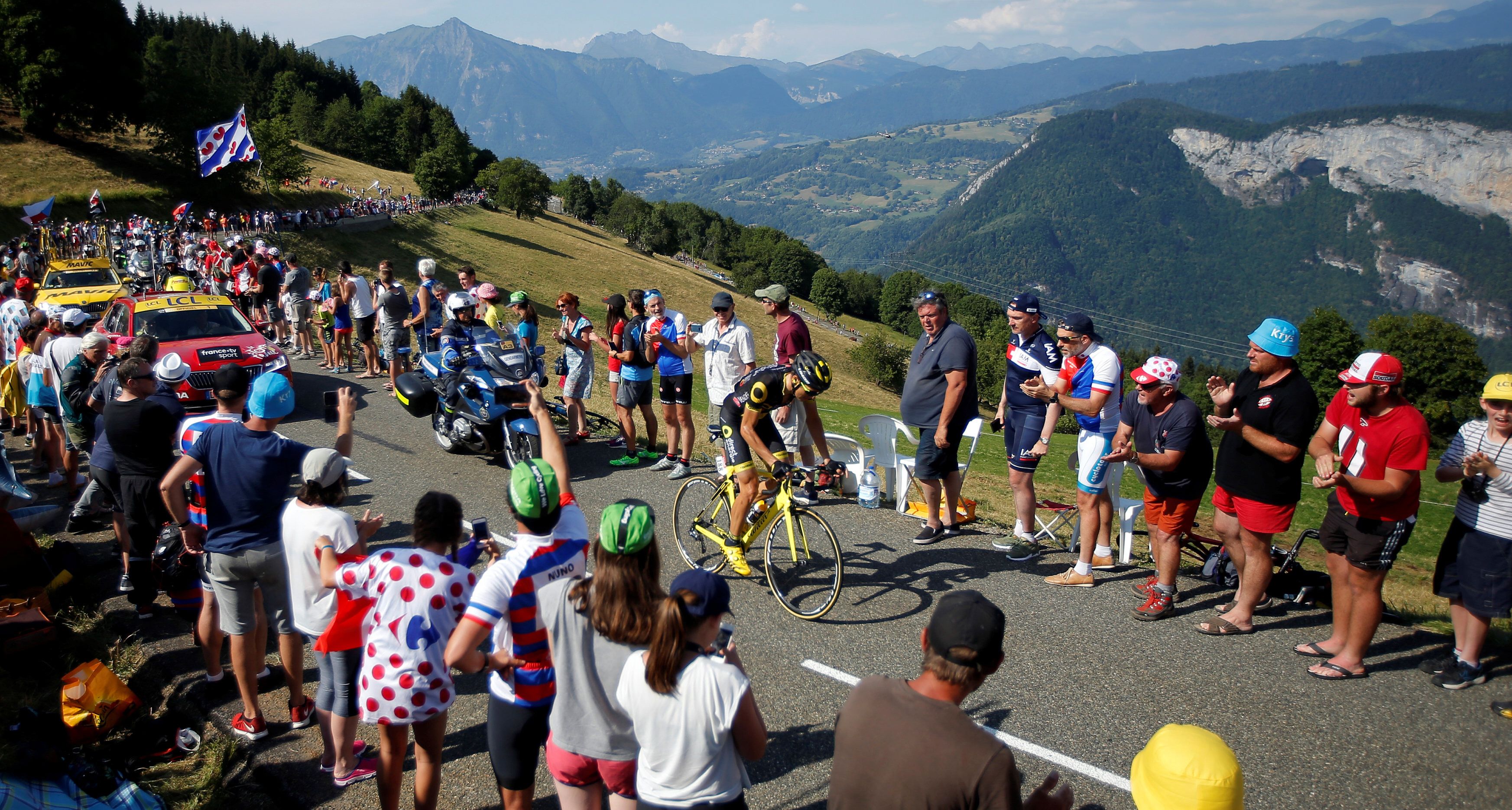 Una postal. Lo imponencia de los Alpes, al paso del Tour de Francia, la competencia ciclista que despierta la locura de los simpatizantes a tal punto de estar varias horas esperando en las alturas a que pasen sus ídolos.