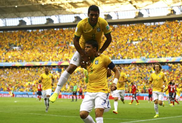 Los defensores Thiago Silva y David Luiz, el rubio de tiro libre, aprovecharon dos acciones originadas con la pelota parada y anotaron los goles locales para llegar a estar entre los cuatro mejores. La alegría para los de la verdeamarelha duró poco, dado que tras el partido el médico del plantel, Rodrigo Lasmar, confirmó que Neymar, a quien embistió Camilo Zúñiga, sufrió la fractura de la tercera vértebra lumbar, por lo que quedó imposibilitado de seguir jugando en este Mundial.