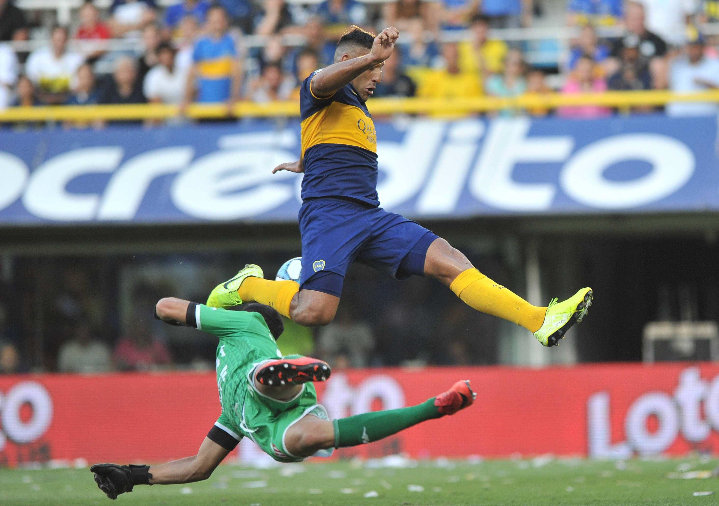 En acción. Ábila sumó el primero de Boca ante Unión. El delantero también habló del Millo y la Libertadores.