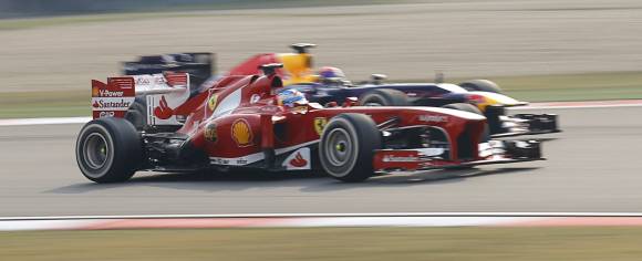 El asturiano, de 31 años, cubrió las 56 vueltas de la pista china (305 kilómetros) en una hora, 36 minutos, 26 segundos y 945 milésimas y se impuso por delante del finlandés Kimi Raikkonen (Lotus) y del inglés Lewis Hamilton (Mercedes). Alonso alcanzó la cima en el 5to. giro y no la soltó más.