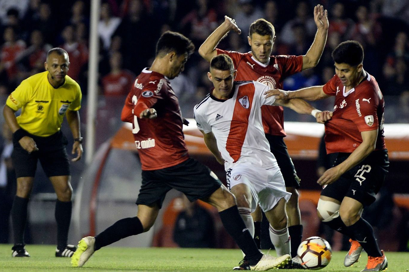 River Plate, que acumula 30 partidos invicto, e Independiente, de pobre campaña en la Superliga Argentina de Fútbol, se jugarán hoy el pase a las semifinales de la Copa Libertadores de América, cuando se enfrenten en el estadio Monumental de Núñez por el desquite de cuartos de final del certamen continental. El encuentro comenzará a las 19.30, tendrá como árbitro al brasileño Anderson Daronco, quien tendrá como jueces asistentes a sus compatriotas Marcelo Van Gasse y Danilo Manis, y será televisado por el canal de cable Fox Sports.