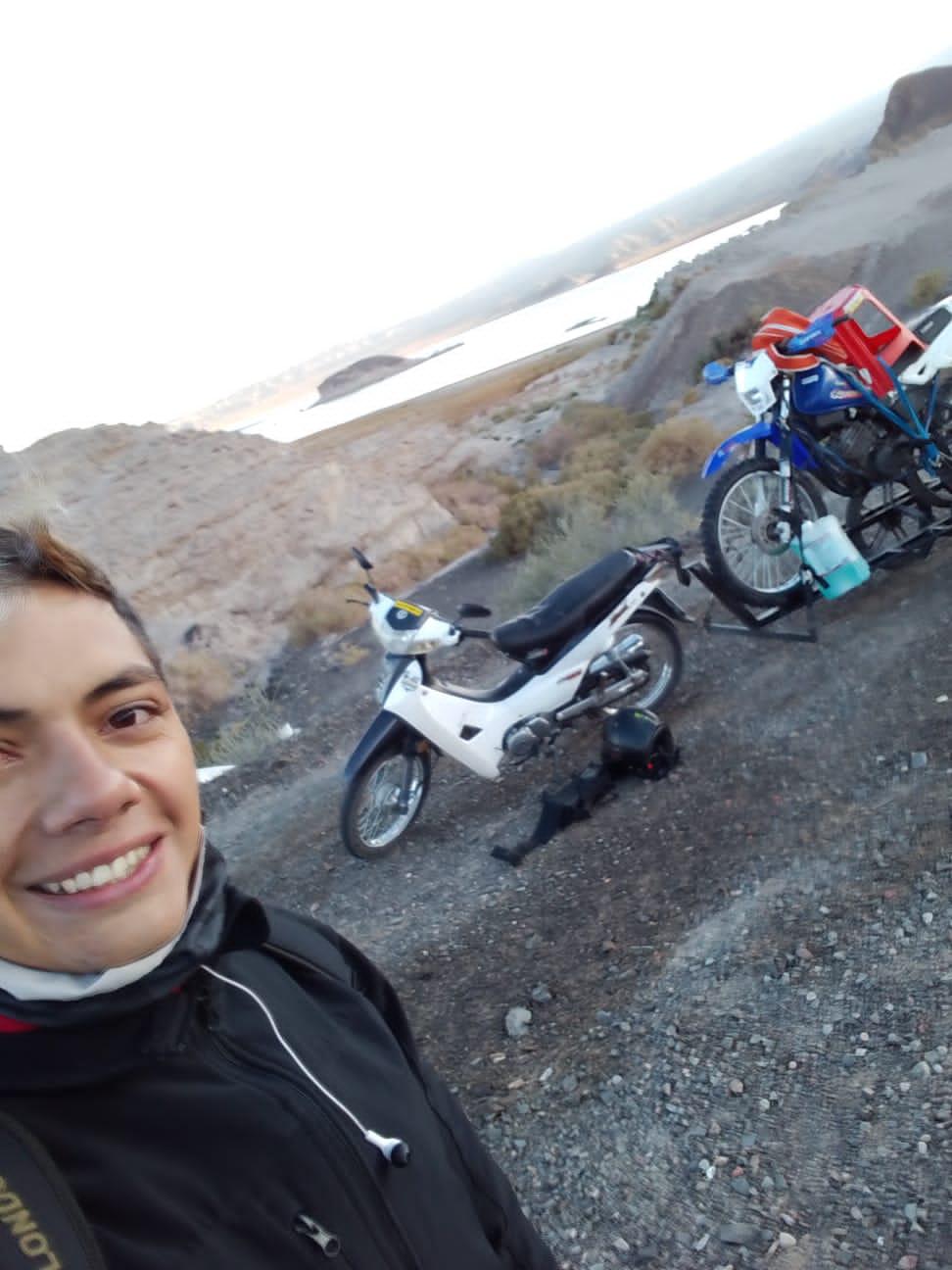 Su motito 110 prácticamente fue su motorhome. Le ató un carro atrás y allí montó su moto de competencia -que es una enduro de calle-, encima le puso los bolsos donde llevó la indumentaria de competencia, una cubierta de repuesto, una mochila con los alimentos indispensables para pasar la jornada y hasta un banquito de plástico para poder descansar previo a la carrera. Así recorrió los pocos más de 300 kilómetros que separan ambos departamentos para llegar a la competencia. Y cuando arribó a Rodeo, fue recibido con aplausos de quienes lo vieron, y hasta le sacaron fotos para destacar el esfuerzo del piloto para poder competir.