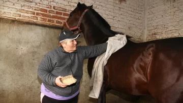Devota de la Virgen de Santa Bárbara de Mogna y de la Difunta Correa, a quien hace poco llevó las vendas y las herraduras de Tamagochi. "En su penúltimo triunfo en San Luis corrió lesionado y tiene tanto corazón que ganó", comenta mientras acaricia el pescuezo y mira embelesada al zaino al que uno de sus propietarios, Fabián Mercado, delega con toda la confianza del mundo a esa, primera y única, dama cuya vida esta dedicada a la pasión de cuidar caballos de carrera.