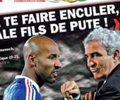 Johanesburgo, 19 de junio.- El delantero francés Nicolas Anelka fue expulsado de la selección de su país tras haber discutido con el técnico, Raymond Domenech, durante el entretiempo del partido ante México, por la Copa del Mundo Sudáfrica 2010. Sin embargo, el jugador negó haber insultado al entrenador y apuntó a un integrante del plantel como responsable del escándalo.