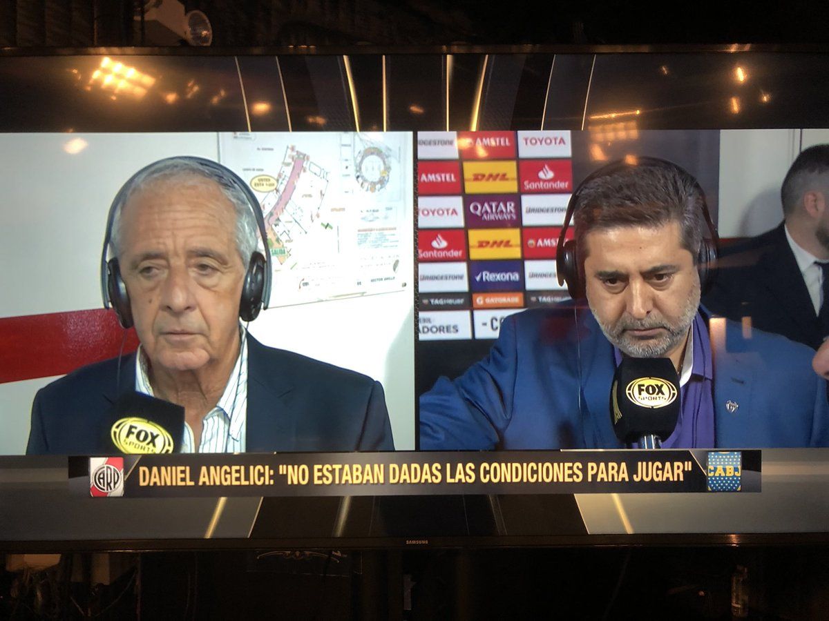 A pesar del mal momento que vivió Boca, Angelici declaró: "Tengo que agradecer a la Conmebol y a la gente de River, que desde que llegamos al club se han preocupado por nuestro jugadores y han puesto todo a disposición".