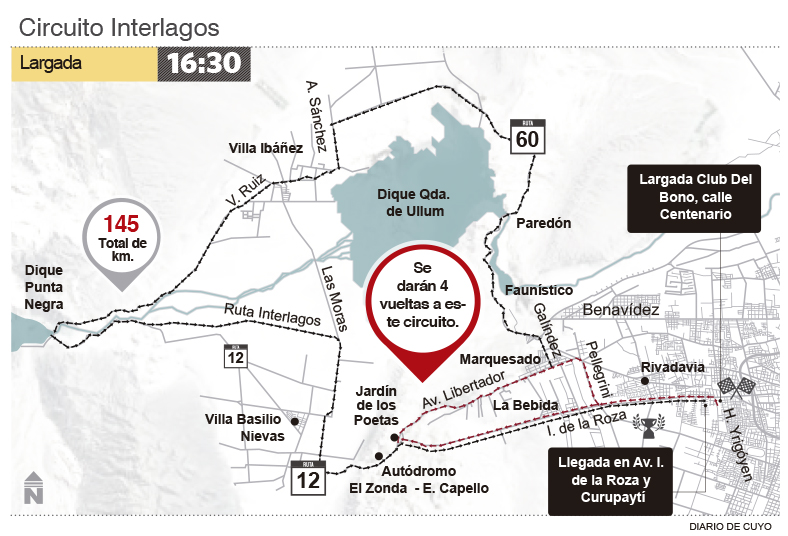 Luego de varias reuniones con las autoridades municipales calingastinas, se determinó mantener la fecha con un competencia de una etapa que se desarrollará, mayormente, en Rivadavia (departamento natal de la institución organizadora) y que luego de visitar Ullum y Zonda, culminará sobre Avenida Ignacio de la Roza, un kilómetro al Oeste de la Esquina Colorada, aproximadamente 200 metros antes del cruce con calle Meglioli.