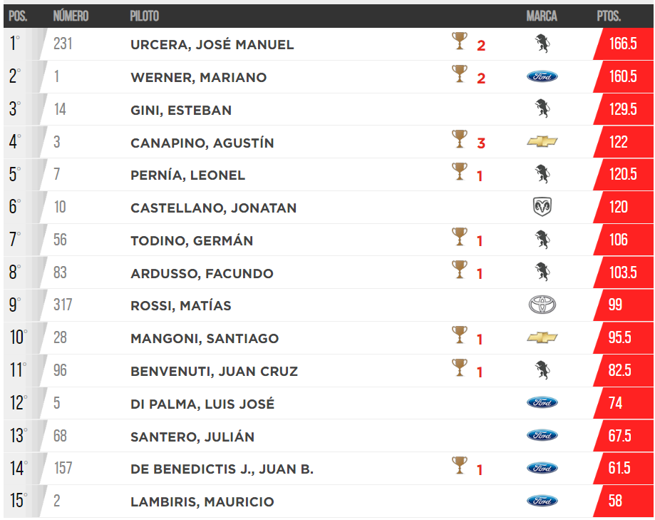 Justamente en la lucha por la vanguardia de la Copa de Oro, el líder Juan Manuel Urcera finalizó sexto en tanto que su primer perseguidor, el actual campeón Mariano Werner, lo hizo en el puesto 10.
