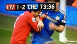 Inglaterra, 21 de abril.- El delantero Luis Suárez ocupó hoy el centro de la escena en la Premier League luego de que en una jugada en ataque mordió a su marca, al serbio Branislav Ivanovic, en el partido entre Liverpool y Chelsea que terminó con un empate agónico de los "Reds" justamente alcanzado por el uruguayo.