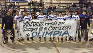 San Juan, 16 de mayo.- Anoche, en cancha de Olimpia se vivió un momento de mucha emoción cuando los jugadores desplegaron en la cancha un bandera en homenaje a Antonio Gómez, fallecido este lunes.