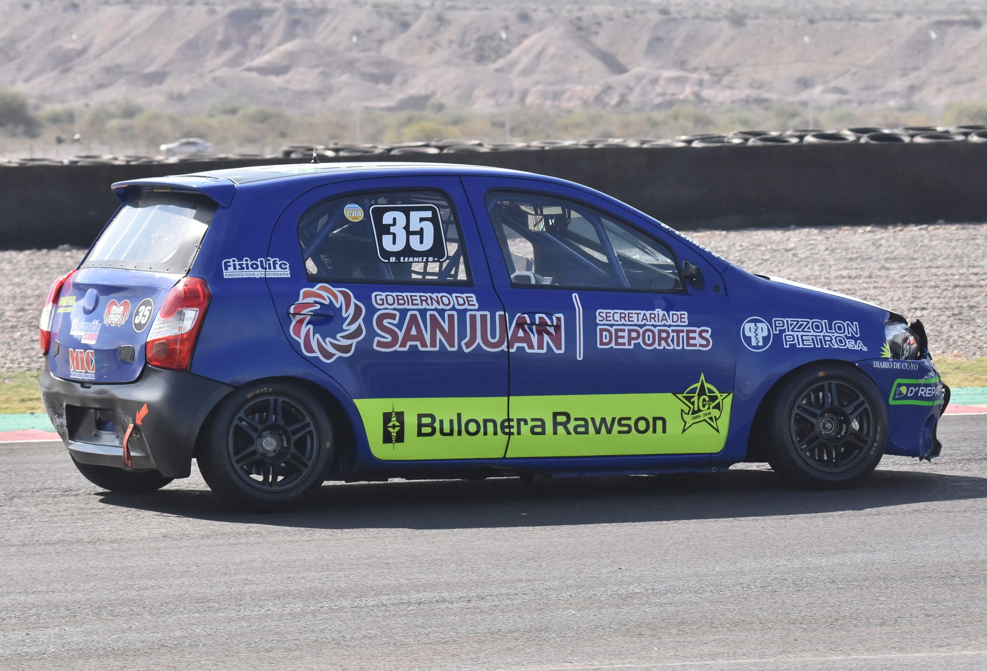 Herido. El Etios de Diego Leánez muestra las heridas de la batalla, especialmente en la trompa del auto.