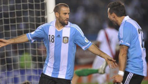 El equipo de Alejandro Sabella, que jugó sin su capitán Lionel Messi, comenzó en desventaja por un tanto de Claudio Pizarro (20m.PT) pero revirtió el marcador con dos goles de Ezequiel Lavezzi (22m. y 34m.PT) y otro de Rodrigo Palacio (2m.ST).