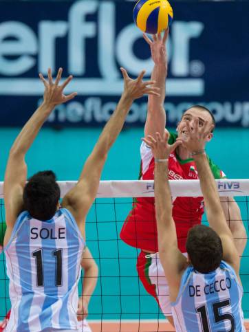 Argentina cerró el primer parcial a su favor por 25 a 22 y perdió el segundo 24-26, tras remontar un 22-24. Los búlgaros comenzaron mejor el tercer set, pero hubo reacción albiceleste y terminó ganando 25-21. En el cuarto y decisivo parcial, la Albiceleste se impuso por un claro 25-17.