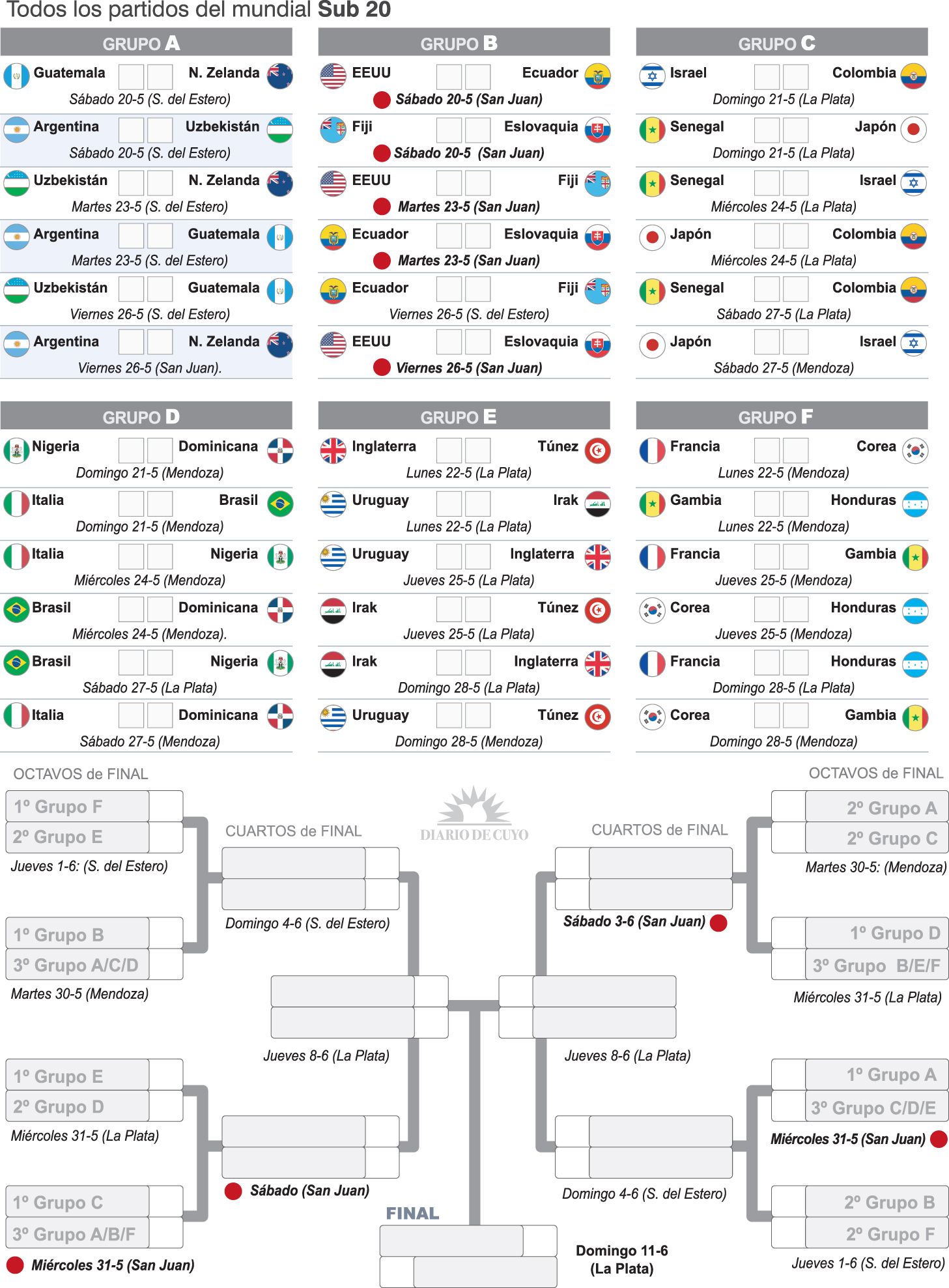 Una decena. Esa cantidad de partidos recibirá el Estadio Bicentenario, de Pocito, durante el Mundial Sub-20 de fútbol, que se disputará del 20 de mayo al 11 de junio en el país. Así quedó determinado en el sorteo realizado ayer en Zúrich, Suiza, en la sede de la FIFA, donde la provincia fue confirmada oficialmente como una de las sedes del torneo, junto a los estadios Diego Maradona (Buenos Aires), Madre de Ciudades (Santiago del Estero) y Malvinas Argentinas (Mendoza).