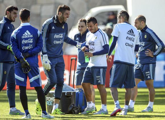 Después, los jugadores (Carlos Tevez, Gonzalo Higuaín, Ezequiel Lavezzi, Lucas Biglia, Fernando Gago, Roberto Pereyra, Milton Casco, Martín Demichelis, Pablo Zabaleta, Erik Lamela, Mariano Andújar y Nahuel Guzmán, participaron con los sparrings de trabajos de definición.