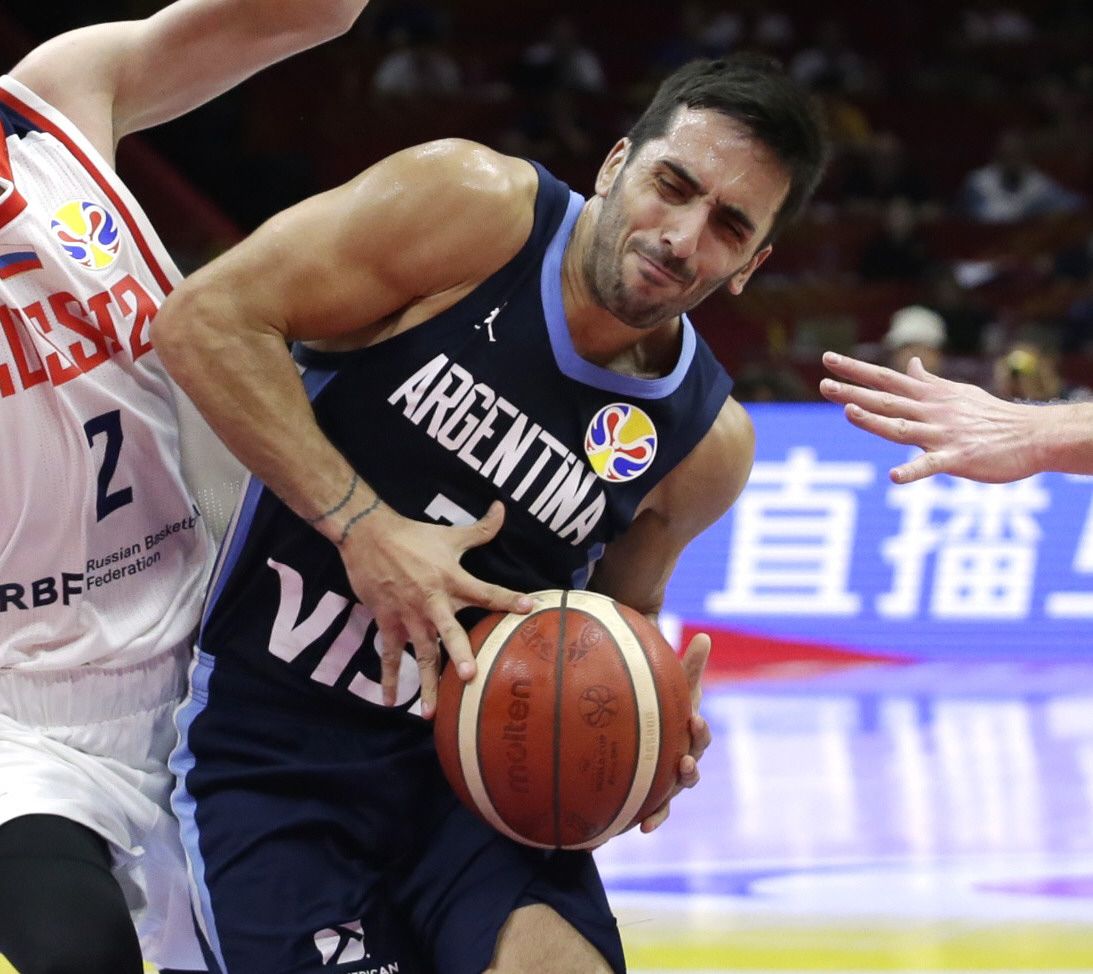 Ataca. Marcos Delia, de la Argentina, fue el pivot titular y anotó 13 puntos ante Rusia.
