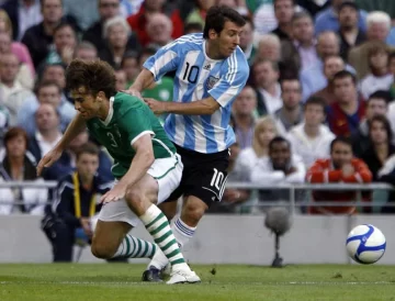 A los siete minutos Messi, encarando de derecha para el medio generó la primera situación de gol del seleccionado argentino, pero falló cuando pisando el área le picó por arriba la pelota al arquero irlandés, que estaba adelantado.