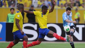 En la fortaleza de los ecuatorianos, el colmado Estadio Olímpico Atahualpa de Quito, el equipo de Alejandro Sabella ganaba desde el minuto 3 del primer tiempo por un penal que convirtió Sergio Agüero, pero a los 17 de ese período Segundo Castillo ígualó de cabeza.